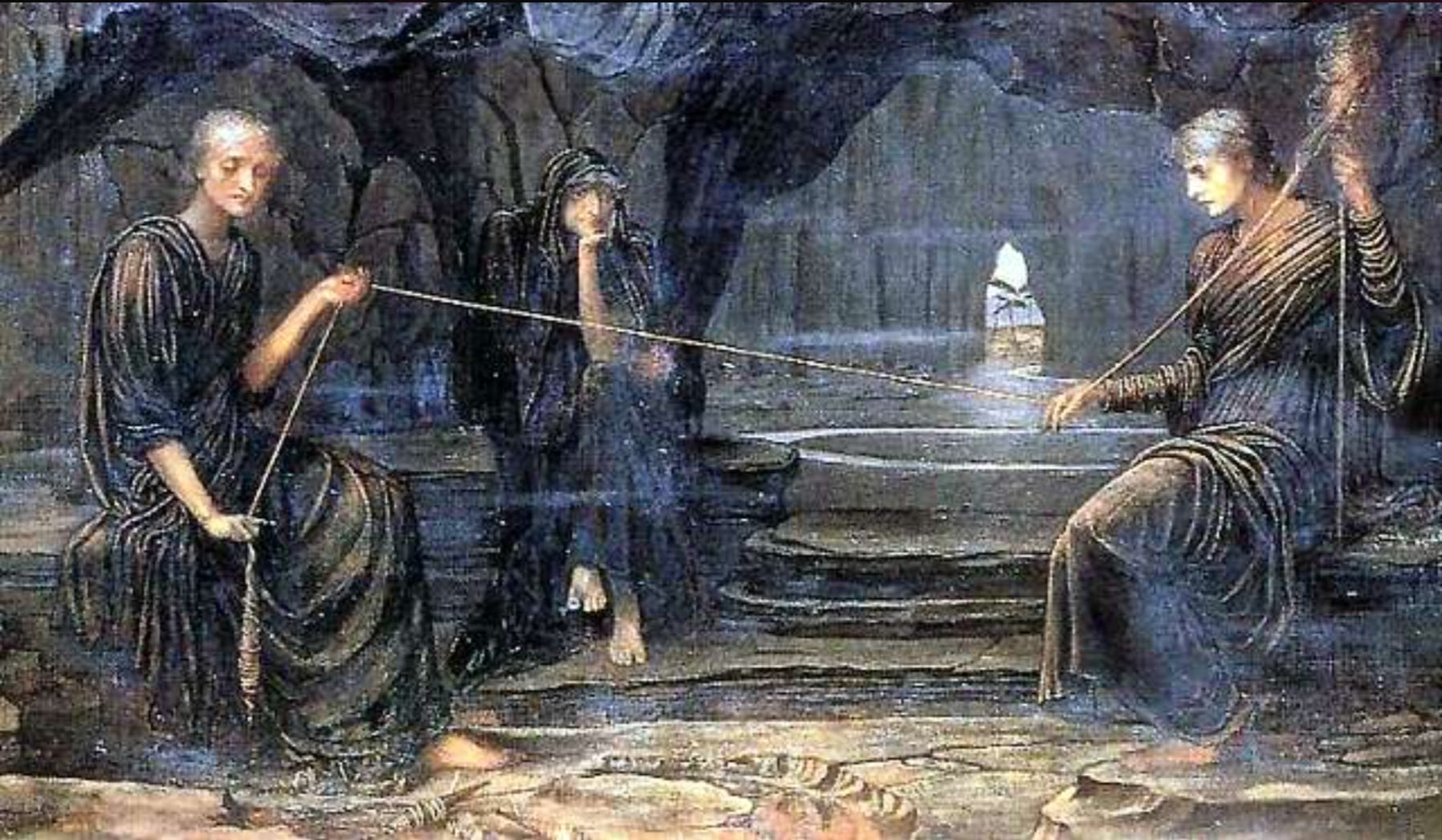Las tres hermanas mitológicas eran la personificación del destino y cada una tenía un rol distinto; Cloto, hilaba el hilo de la vida de todas las personas; Láquesis, medía el hilo, asignando la duración de la vida y determinando su suerte; y Átropos, cortaba el hilo con sus tijeras, marcando el final destino. Algunos mitos dicen que son hijas de Nyx, diosa de la noche, pero otros comentan que son hijas de Zeus y la titánide Temis. Los dioses no se interponen en su labor, sabían muy bien que al hacerlo podrían enfrentar graves consecuencias. Esto quiere decir que hasta los más poderosos gobernantes les tenían miedo.
